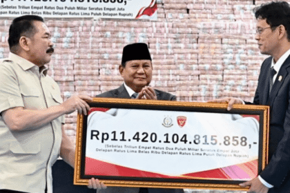 Oleh: Ahmad Subarkah Pemandangan tumpukan uang tunai senilai Rp11,4 triliun di Kantor Kejaksaan Agung pada Jumat, 10 April 2026, bukan sekadar seremonial birokrasi biasa yang kerap menghiasi layar kac...