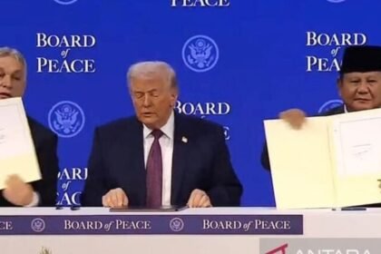 Davos, Swiss – Presiden Prabowo Subianto menandatangani dokumen untuk bergabung dengan Board of Peace (BoP) atau Dewan Perdamaian untuk Gaza, yang dibentuk Presiden Amerika Serikat (AS), Donald Trump....