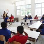 “Nanti kita punya studio, guru-guru terbaik akan ngajar di sekolah yang tidak ada guru matematika, tidak ada guru bahasa inggris ya dia dapat pelajaran hybrid dan interaktif. Kita bisa monitor di kelas itu. Ini lompatan dalam rangka human capital,” terang Prabowo.